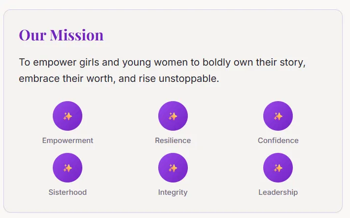 Empowering girls and young women to boldly own their story, embrace their worth, and rise unstoppable.